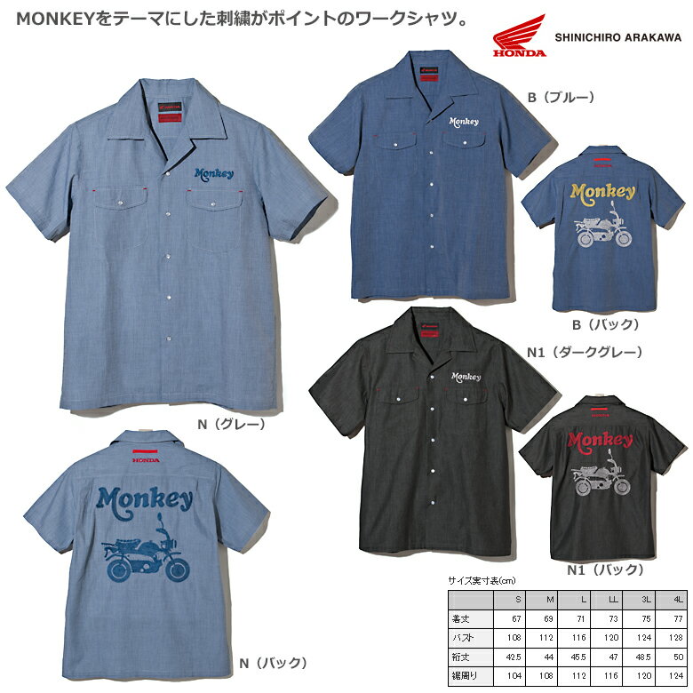 HONDA ホンダHonda×SHINICHIRO ARAKAWA 2015春夏モデル EL-T58 モンキー ワークシャツ(ブルー)