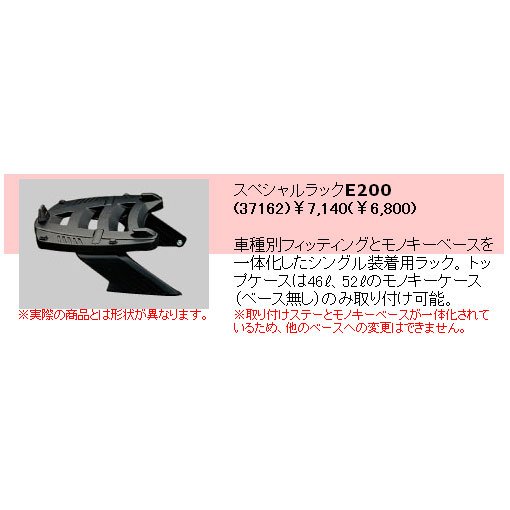 GIVIトップケースをがっちり固定できる専用の車種専用取り付けフィッティングです。 商品概要 メーカー GIVI(ジビ) モデル名 トップケース装着用フィッティング ホンダ アフリカツイン750(’90-’92)用 タイプ モノキーケース用 内容 スペシャルラックE200 メーカー希望小売価格 ¥7140(税込) 返品・交換 不可 ■商品説明 ●GIVIのトップケースをがっちり固定するための、取り付けカンタン、車種専用フィッティングです。 ●モノキーケース用ですので、モノキーケースを選択ください。容量は46L、52Lのみ装着可能です。 ■適合車種:ホンダ アフリカツイン750(’90-’92)用 装着時のご注意:特になし。 ■備考 ●返品・交換:不可 ●注意:この商品には、トップケースはついていません。別売のトップケースが必要です。フィッティングのタイプに応じたトップケースを選択ください。 ■補足