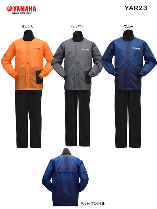 背面画像は【オレンジ】です。ご参考にしてください。 ■ 在庫に関してのお願い ■ 掲載商品は、当店在庫(商品)とメーカー在庫(お取り寄せ商品)がございます。上記在庫表は、約1週間ごとに更新しております。ご注文後でも売り切れの場合がございます。その場合、メールでお知らせしますが、予めご了承の程お願いいたします。YAMAHA YAR19 サイバーテックス2 ダブルガードレインスーツ イエロー■商品詳細【カラー】オレンジシルバーイエローネイビー【サイズ】S・M・L・BL・LL・3L・4L【素材】表地:サイバーテックスII(ナイロン、PUコーティング2層構造) 裏地:メッシュ(ナイロン100%) ?耐水圧:20,000mm/cm2?透湿量:12,000g/m2/24h?防水透湿素材:サイバーテックスII【使用上の注意】当商品は防水性能を備えていますが、ご使用後濡れたまま、特に高温多湿の中に放置されると、著しく性能が劣化する場合があります。ご使用後は汚れを落とし陰干しにて充分乾かしてから日光の当たらないところに収納してください。また、直射日光(紫外線)により性能が劣化する場合もあります。直射日光の元では絶対に干さないでください。|レイン|ウェア|YAMAHA|売場案内|YAMAHA YAR19 サイバーテックス2 ダブルガードレインスーツ イエロー雨や風を入りにくくし、汗による衣服内の余分な湿気を外へ放出する「CYBER TEX II」を使用。メッシュ裏地で快適性も確保【サイバーテックス2とは】