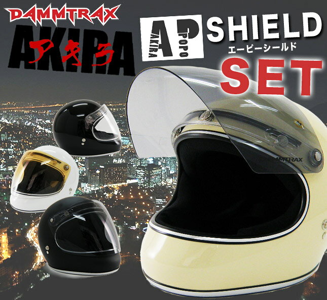 【予約10/20出荷】レビューを書いて★送料無料★【ダムトラックス AKIRA ヘルメット+APシールドセット】【アイボリー】アキラ専用シールド付き フルフェイスヘルメット DAMMTRAX AKIRA ヤマハ XJR400 RZ カワサキ ゼファー エストレヤ ベンリー50S クォーターST250 等