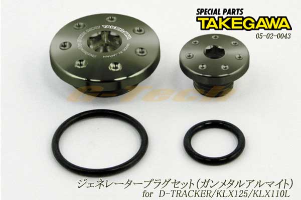 スペシャルパーツ武川製ジェネレータープラグセット(ガンメタルアルマイト)D-TRACKER/KLX125/KLX110L用商品基本情報 aaa■商品名SP武川製 ジェネレータープラグセット(ガンメタルアルマイト)■品番05-02-0043■参考定価2,940円 (税抜 2,800円) 10%OFF■商品の状態新品 未開封適合車種aaa車種フレームNo.DトラッカーLX125D-A00000〜KLX125LX125C-A00000〜KLX110LLX110D-A72046〜適合するかどうかよくお確かめの上ご注文下さい。メーカーWebサイトでもご確認をお願い致します。当店では、不適合による返品・交換は一切お受けできませんので予めご了承下さい。商品説明■特徴・ノーマルのエンジンスタイルに合わせ、メカニカルなデザインを採用し、アルミ削り出し材にカラーアルマイトを施すことでアルミ材を美しく際立たせドレスアップ効果を高めております。・取付けは、ノーマルジェネレーターカバーキャップ、プラグと交換するだけなので、手軽にカスタムをお楽しみ頂けます。エンジン回りのワンポイントカスタムにお薦めのドレスアップパーツです。・セット内容:ジェネレーターカバーにあるタイミング点検用プラグとクランクシャフト回転用のプラグの2種類に各プラグ専用Oリングをセット■関連商品05-02-0042ジェネレータープラグセット(ブルーアルマイト)05-02-0043ジェネレータープラグセット(ガンメタルアルマイト) ※ 当製品