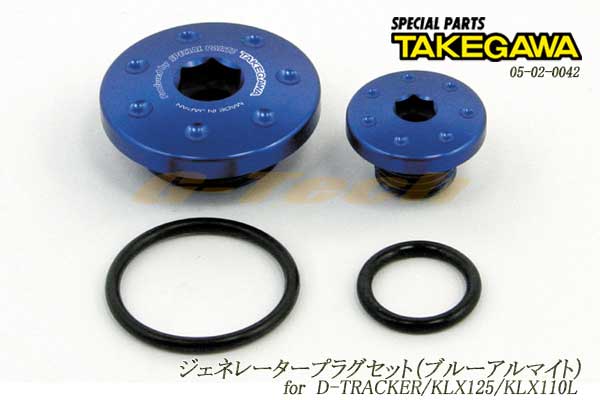 スペシャルパーツ武川製ジェネレータープラグセット(ガンメタルアルマイト)D-TRACKER/KLX125/KLX110L用商品基本情報 aaa■商品名SP武川製 ジェネレータープラグセット(ガンメタルアルマイト)■品番05-02-0043■参考定価2,940円 (税抜 2,800円) 10%OFF■商品の状態新品 未開封適合車種aaa車種フレームNo.DトラッカーLX125D-A00000〜KLX125LX125C-A00000〜KLX110LLX110D-A72046〜適合するかどうかよくお確かめの上ご注文下さい。メーカーWebサイトでもご確認をお願い致します。当店では、不適合による返品・交換は一切お受けできませんので予めご了承下さい。商品説明■特徴・ノーマルのエンジンスタイルに合わせ、メカニカルなデザインを採用し、アルミ削り出し材にカラーアルマイトを施すことでアルミ材を美しく際立たせドレスアップ効果を高めております。・取付けは、ノーマルジェネレーターカバーキャップ、プラグと交換するだけなので、手軽にカスタムをお楽しみ頂けます。エンジン回りのワンポイントカスタムにお薦めのドレスアップパーツです。・セット内容:ジェネレーターカバーにあるタイミング点検用プラグとクランクシャフト回転用のプラグの2種類に各プラグ専用Oリングをセット■関連商品05-02-0042ジェネレータープラグセット(ブルーアルマイト)05-02-0043ジェネレータープラグセット(ガンメタルアルマイト) ※ 当製品