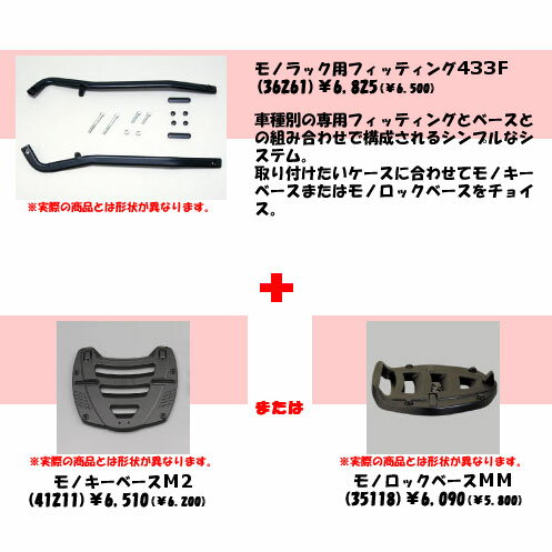 GIVIトップケースをがっちり固定できる専用の車種専用取り付けフィッティングです。 商品概要 メーカー GIVI(ジビ) モデル名 トップケース装着用フィッティング カワサキ ZRX1100/2(’97-’99) タイプ モノキーケース用とモノロックケース用が選択できます。 内容 モノラック用フィッティング433F+モノキーベースM2またはモノロックベースMM メーカー希望小売価格 部品合計¥12915(税込)/¥13335(税込) 返品・交換 不可 ■商品説明 ●GIVIのトップケースをがっちり固定するための、取り付けカンタン、車種専用フィッティングです。 ●フィッティングには2種類あります。モノキーケース用を選択の場合、モノキーケースを、モノロックケース用を選択の場合、モノロックケースを選択ください。いずれのケースもどの容量でも装着できます。またストップランプ付きを選択の場合、配線加工が必要です。 ■適合車種: カワサキ ZRX1100/2(’97-’99) 装着時のご注意:グラブバーは取り外し要。ふちゴム外す。 ■備考 ●返品・交換:不可 ●注意:この商品には、トップケースはついていません。別売のトップケースが必要です。フィッティングのタイプに応じたトップケースを選択ください。 ■補足